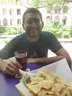 We awoke at about quarter past 4, just as the conductor was walking along the aisle telling those departing that San Antonio was coming up in around 20 minutes. When the train slowed, we grabbed our belongings and disembarked when the train finally came to a full stop. As it was pitch black outside, we killed a couple of hours by waiting in the train waiting room before heading out at around 7am to walk to our hotel. As with Tucson, we'd had to splash the cash in San Antonio, as there had been no hostel in the town. The hotel was about a half an hour walk from the station and it was pretty easy, being almost down one straight road. We weren’t getting our hopes up about checking in anytime soon but were very pleasantly surprised when we were given our key and pointed in the direction of our room. To be able to have a shower after a 20 hour train ride was a huge boost, so we freshened up and headed down to help ourselves to the buffet breakfast. Once we were full, we got our things together in the room and headed out into San Antonio. We had to admit, San Antonio was one of the places we knew least about when we were doing our planning but were surprised to find out that the Alamo was located right in the downtown area. That was our first destination and was only about 15 minutes away from our hotel. Not only was it good that it was centrally located, it was a bonus that it was free to enter, which always goes down well with us. We entered through a gate and wander round the grounds of the Alamo. Our knowledge of the Alamo was as thin as our knowledge has been of San Antonio but I did drag up from somewhere that it had been the location of a famous battle during Texas’ battle for Independence from Mexico. When we got round to reading the boards inside what used to be the barracks, we found out that this was true, as well as other things like that Davy Crockett was involved, obviously Texas won that was for Independence and that it eventually joined the Union of states before being split into a number of new states such as Texas, California, New Mexico, Arizona and Utah. The main display was within those barracks, so once we were out, we wandered around the gardens, briefly through the gift shop and finished off with the church. The Alamo was originally a mission to educate the American Indians after their conversion to Christianity. The church was the iconic building of the Alamo however, there wasn't a huge amount to see inside and mainly consisted of lists of names of who was involved in the various battles that revolved around the Alamo. After the Alamo, we wandered around the town for a short while, picking up a pin badge along the way. Afterwards, we returned to our hotel for a short rest and a lunch stop before heading across the road to have a look around the market square. The square consisted of a number of restaurants as well as an indoor Mexican market that sold various touristy items such as sombreros, Mexican wrestling masks, pottery and numerous cowboy hats. We weren't really after anything but thought we'd best have a look around. After the market square, we ventured back into the downtown area, towards an area called La Villita, which was where the first Europeans settled in San Antonio and was now a pretty quiet area that had a few restaurants, shops and galleries. From La Villita, we could access the San Antonio river walk, which was probably the highlight of San Antonio. It was a series of concrete pathways built next to the river as it meandered through downtown. Some of the river walk was just pathways but other areas had restaurants and cafes to relax in and enjoy the scenery. We fancied a beer, so rather than choose somewhere specific, which we are terrible at, as we were walking up, we said we would go for the third place in and just go for it. The third place turned out to be an Irish pub, so we skipped that and went for the one after it. We were given a seat overlooking the river, which seemed like a good idea at the time. We were kept amused by a tame duck pecking away at one of the people sat next to us in search for food. About half way through our drink, I received an unwanted gift as a bird relieved itself on the side of my head and my shoulder. We could only laugh and luckily, nobody else around us noticed it. As Charlotte pointed out, it is considered lucky, so we were hoping to find some money on our walk back to our hotel. We paid the bill, refused the tip and set off back to the hotel, so I could get out of my soiled clothes. Apart from a meal out, we'd done everything we wanted to do in San Antonio, so we spent a couple of hours relaxing in the room, in an attempt to recover from the tiring train ride the day before. We regretted the brief sleep we both had but forced ourselves up and out and across the road to the restaurant we'd picked for dinner. It was recommended by Lonely Planet and featured on our map of the city, so we reckoned it couldn't be too bad. It was called Mi Tierra and was listed as a cafĂ© and bakery. It had started out with 3 tables but now boasted more than 500 seats, so it was a sizeable establishment. After a bit of a wait, we decided to go for what were selection plates of various tex mex foods. We both had a taco, an enchilada, some Spanish rice and some refried beans but mine came with something called chilli con quesa (quesa being Spanish for cheese) and some guacamole, which was silly as I can't stand avocado and really can't understand why it is the hippest fruit/vegetable in the world right now. We sipped our beers and snacked on the tortilla crisps and salsa whilst we waited for our dinners to arrive. They were hefty portions and by the time we finished, we could barely move from our seats. The tacos had been the highlight by a long distance and we both slightly regretted not going for just a plate of them each. We were still content with what we tried though and we paid our bill, left no tip and headed off to pack w