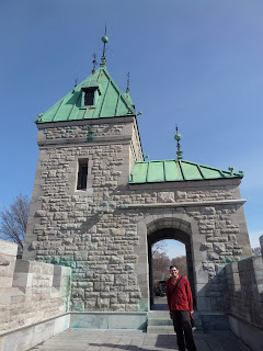 We were awakened by the screaming and stomping schoolchildren, who seemed to be completely unable to do anything quietly. There were also hordes running around the breakfast room like it was a playground, so it was starting to seem like we just couldn't get away from them. By the time we'd finished our breakfast, things had quietened down a tad and we were pleased to see at least one group checking out. We didn't waste time in getting out and we on the streets just after 9. Unfortunately, we spent our first couple of hours walking to a shop that didn't have the thing we were after, so we were a bit irritated by that. On top of that, we had an hour bus ride to what was to be our first worthwhile stop of the day, so we didn't get properly underway until about 1 o'clock. Our stop was the end of the line about 6 miles out of Quebec City at the Parc De La Montmorency Chute. In English that Montmorency Falls Park. It was a waterfall that Charlotte informed me was higher that the world famous Niagara Falls down in Ontario but just wasn't as productive. The falls were only a couple of minutes walk from where the bus dropped us off, which was handy and before we knew it, we were walking across a swing bridge right above the cascading water. Charlotte has a phobia of swing bridges and high places and I must admit, to look down at the gushing water made my stomach turn a bit. We walked across, probably ending up in a dozen people's photos along the way, and walked round to where there was a set of stairs leading down one of the side of the cliffs that the waterfall had undoubtedly washed away over millions of years. We only went so far down, as there was a considerable amount of water going over the falls that was creating a significant amount of spray, so we didn’t want to get soaked. We stopped to take some photos and enjoy the scene, before heading back up the stairs in search for some food. It just so happened that there was a huge supermarket just outside the park we were in, so we took a little detour in order to pick up a couple of chocolate bars for a boost of energy. Unfortunately for Charlotte, in order to get back to the bus stop, we had to cross the dreaded swing bridge. She ploughed on over and left me to take some photos of the fantastic view out across the St.Lawrence River. We found another set of steps that gave us another angle on the falls and that also led to a platform where you could get a cable car across the face of the falls. It wasn't something we fancied doing, so we headed back to the bus stop and picked up one immediately. It was a 50 minute ride back to our stop, where we hopped off and headed back to the hostel for a late lunch. We allowed ourselves a quick rest after our toasted sandwich and we're back out at 4. Quebec City is the only city in North America north of Mexico, that still has its original city walls and they were where we were heading for a late afternoon stroll. We'd been under them a couple of times but this time, we headed up the stairs at one of the many gates, past the local tramps who said something to us in French that we ignored and started walking along the ramparts. We went the wrong way at first but eventually found our way. It was a really nice walk in a really nice old town. We passed the old citadel of the city before reaching what is called Dufferin terrace, which is a boardwalk that wraps itself around the outside of the walls and offers fantastic views of the St.Lawrence River and the suburbs on the south banks. We followed the terrace round until it widened and presented us with one of Quebec City’s most popular tourist attractions, the Chateaux Frontenac, which is a huge hotel overlooking the river and is reputedly the most photographed hotel in the world. That was another to tick of our list as we'd also been to what is allegedly the most photographed train station in the world in Dunedin, New Zealand. We'd be looking for the most photographed library next! With a day still to go in Quebec, we didn't stop for too long and instead just focused on walking the walls and admiring the numerous cannons that still lines them. Eventually, we reached a familiar spot, the hill we'd been up and down twice whilst looking for a supermarket. We veered off up to the main road and had a look in a couple of shops along the way, before returning to the hostel to rest our legs. As much as we wanted to stay out because it was a lively evening, we didn't want to leave ourselves with nothing to do the following day, even if it was supposed be raining. So we relaxed in the room before heading down to the kitchen to face the screaming children. As they were swarming the kitchen, we sat outside and played a game of Mapominoes to pass the time before their bedtime and then moved in to cook once they'd gone. Dinner was a bit of a disappointment and we put it down to the tin of 6 beans mix we'd picked up from the shop. We still filled ourselves up though but it was the first time we'd thrown any food away whilst on the road, which was a shame.